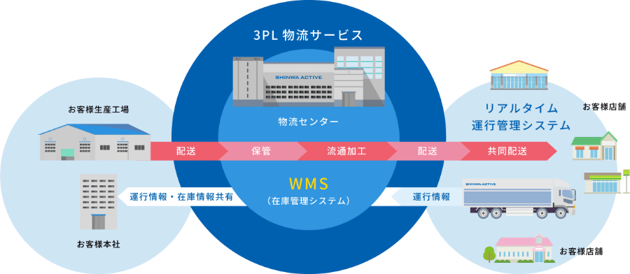 物流業務を統括的に設計し最適な物流をご提案いたします。プロにアウトソーシングをすることでコストの削減だけではなく、顧客サービスの向上、納品リードタイムの短縮、コア事業の強化など物流を通してお客様の企業競争力の強化に貢献します。